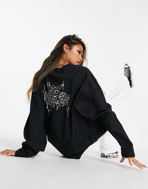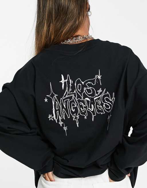 Topshop Los Angeles Long Sleeve Skater T Shirt In Black Asos